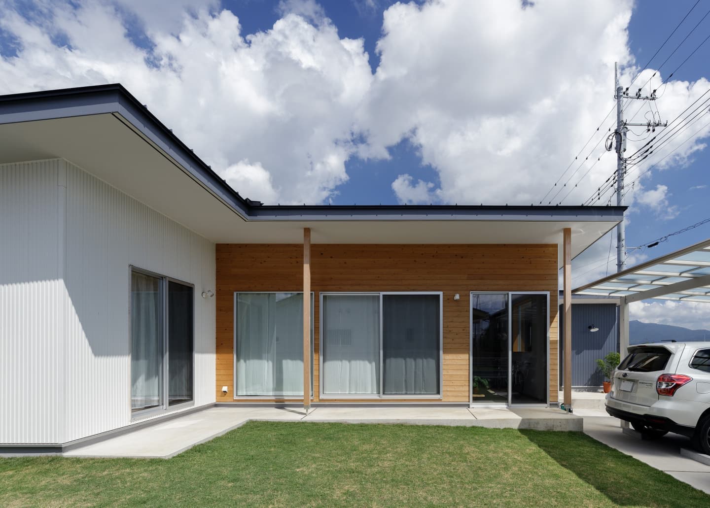 | 外壁)ガルバリウム鋼板竪波 窯業系サイディング竪波 アクセント壁)杉羽目板貼の上保護塗装 内装)壁)ビニルクロス 天井)ビニルクロス/一部羽目板貼 床)無垢フローリング/一部塩ビタイル |