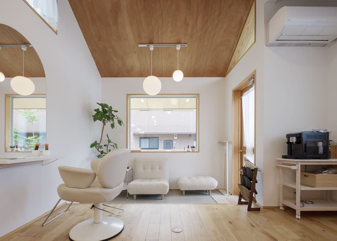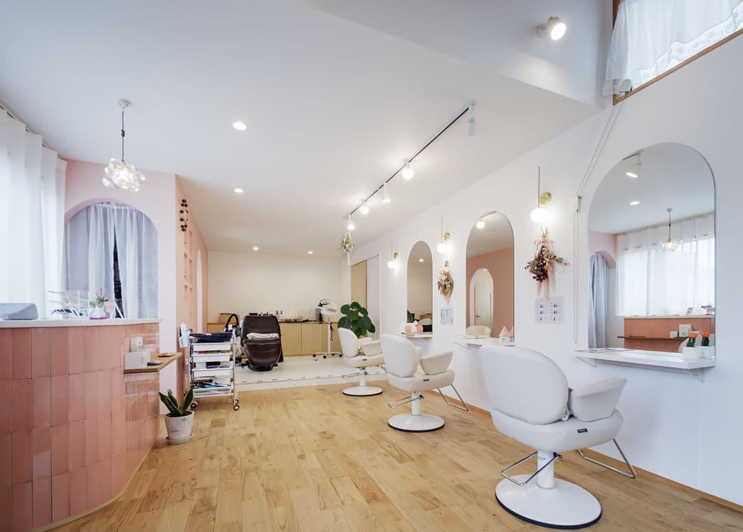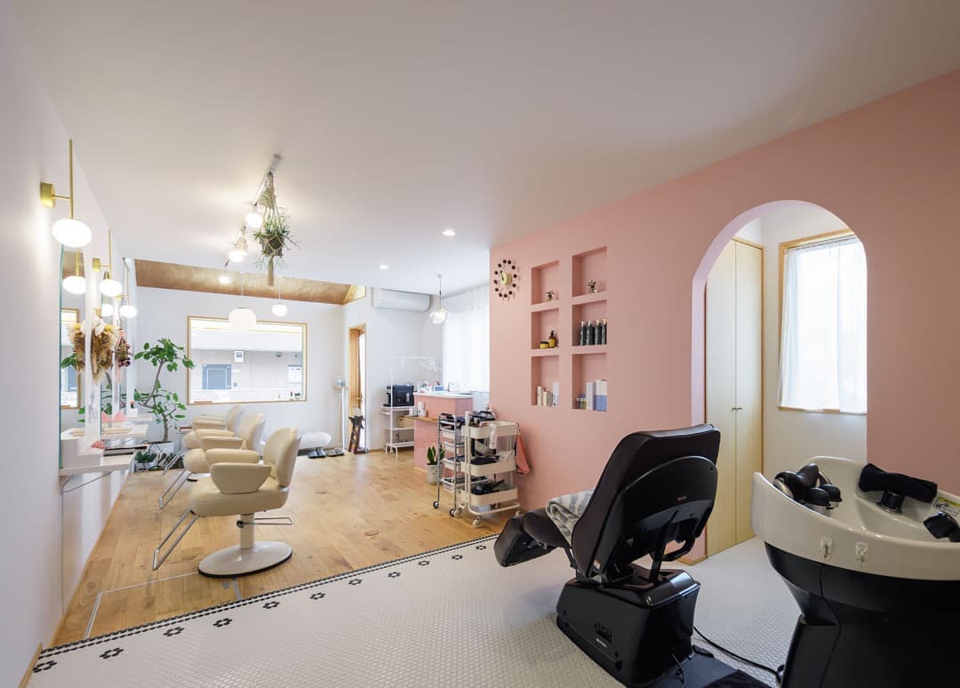 | ひたち野うしくの閑静な住宅街に佇む、小さな美容室の計画です。 既存住宅の一室を増築し、店舗へと改修しました。 店舗名「hommy」は、“おうちのように落ち着ける場所にしたい”という、美容師であるオーナーの想いから名付けられたもの。 その名前の通り、どこかホッとするような、親しみと居心地の良さを感じられる空間づくりを目指しました。 店内には、ピンクのアクセントウォールやタイル貼りのカウンター、モザイクタイルの床など、細部にまでオーナーのこだわりが詰まっています。 そうした素材や色使いを、無垢のフローリングがやわらかく包み込み、「hommy」の名にふさわしい温もりある空間が生まれました。 。 |