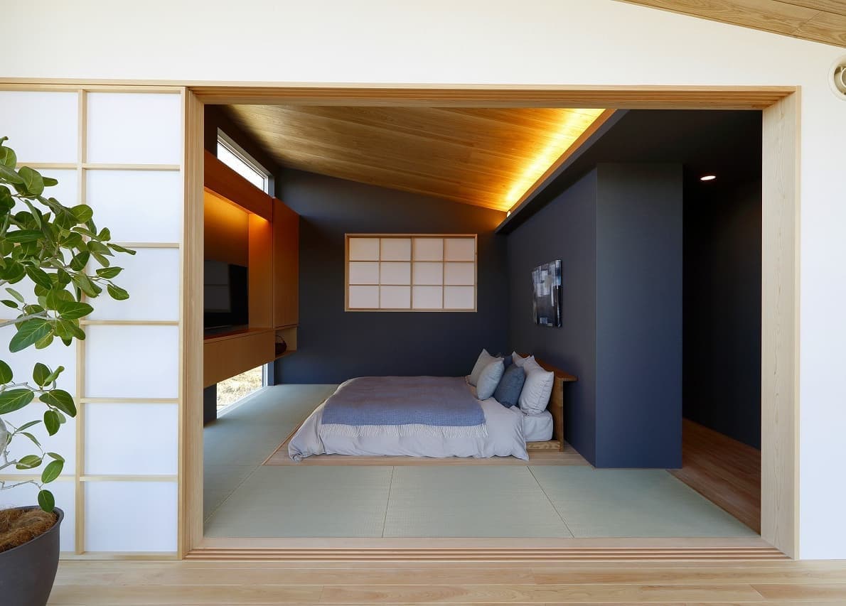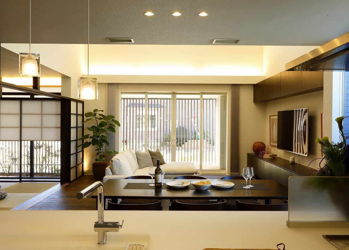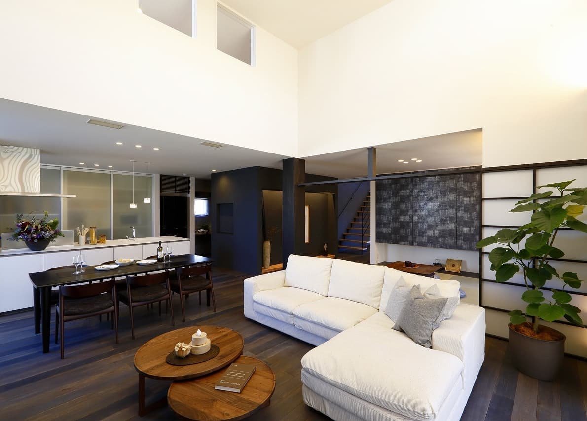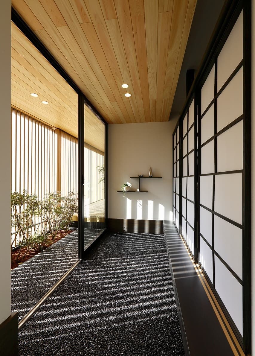 | 株式会社アキュラホーム 守谷展示場 本計画は、2017年の設計コンペにて採用され、設計監修を行いました。 外観は、片流れのシャープな屋根と縦格子の木目調ルーバーが印象的な構成。2階より上部をガラスウォールとすることで、屋根が軽やかに浮かび上がるようなデザインとしています。1階のルーバーは可動式となっており、時間帯や季節に応じて視線や日射を柔軟に調整できるよう配慮しています。 内部は、外観のモダンな印象とは対照的に、日本の伝統文化を意識した和の要素を随所に取り入れた、落ち着きのある空間構成としています。素材選びや細部の設えにこだわりながら、アキュラホームの技術力を活かし、現代的な感性を添えた遊び心のある空間となっています。 各室は実生活を想定したスケール感で構成されており、日々の暮らしの中で心地よさを実感できるよう、丁寧なプランニングを行いました。 |